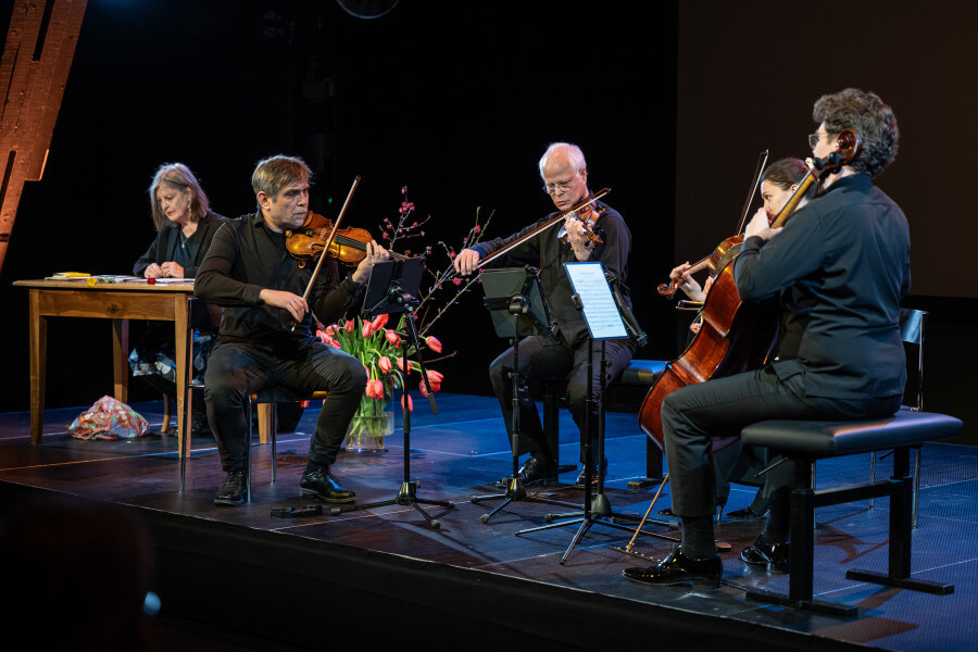 Am Sonntag, 22. März erwiesen illustre Gäste Buno Ganz anlässlich seines 85. Geburtstags die Referenz. Gemeinsam erinnerten sie sich an den grossen Schauspieler. Seine Stimme erklang - bewegend - ab Band. Angela Winkler las und das Delian Quartett spielte. Ein unvergessliches Erlebnis für alle Anwesenden. Daniel Rohr dankte der Lebensgefährtin und Theaterfotografin Ruth Walz für die Initiative. Im Foyer wurden Bilder der Fotografin ausgestellt. Sie zeigten Bruno Ganz in verschiedenen Theater- oder Filmproduktionen.