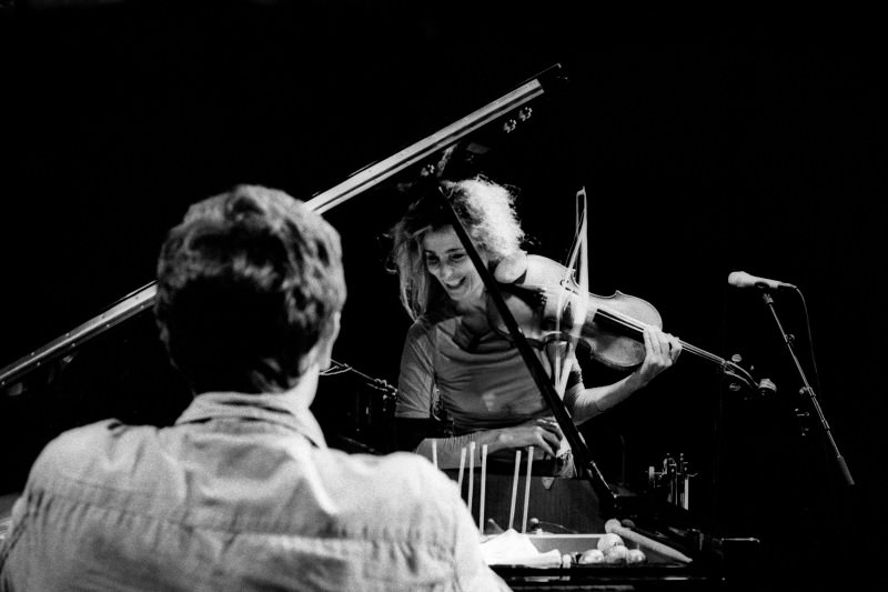 Ein "Französisch-Schweizer Duo, das verblüfft. Ein langjähriges Improvisations-Duo - gnadenlos, einmalig. Frankreich ist durch den Pianisten Frédéric Blondy vertreten, dessen Auftritt mit der Schweizerin Charlotte Hug, Viola und Stimme, trotz der kammermusikalisch erscheinenden Besetzung einer der experimentelleren sein wird.