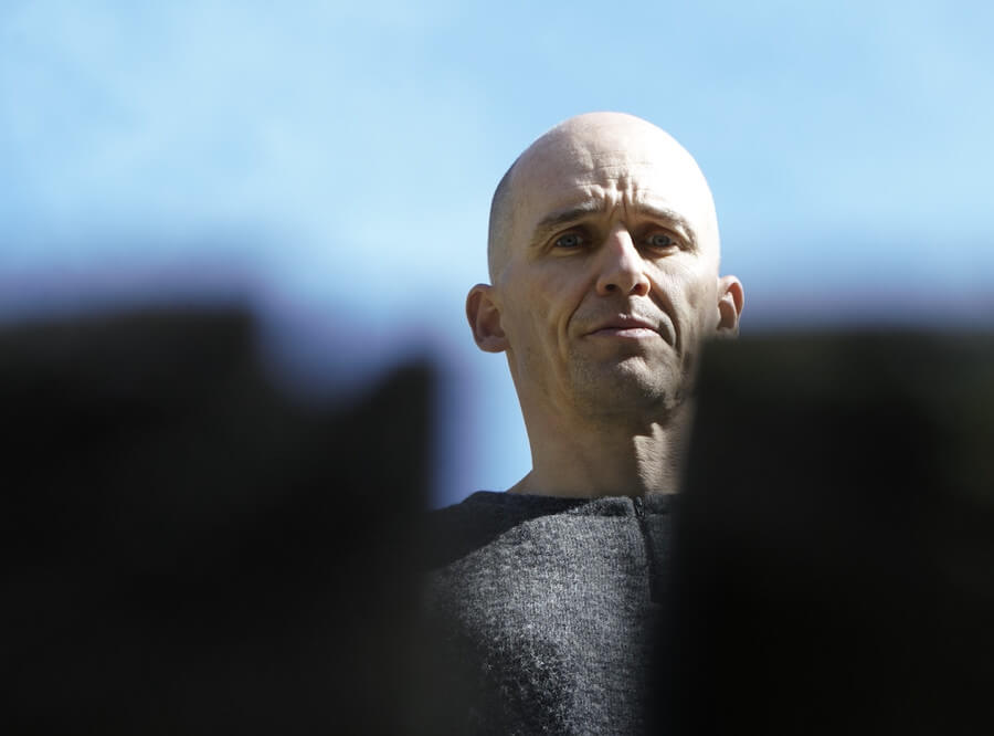Jens Nielsen mit dem Stück von Friedrich Dürrenmatt