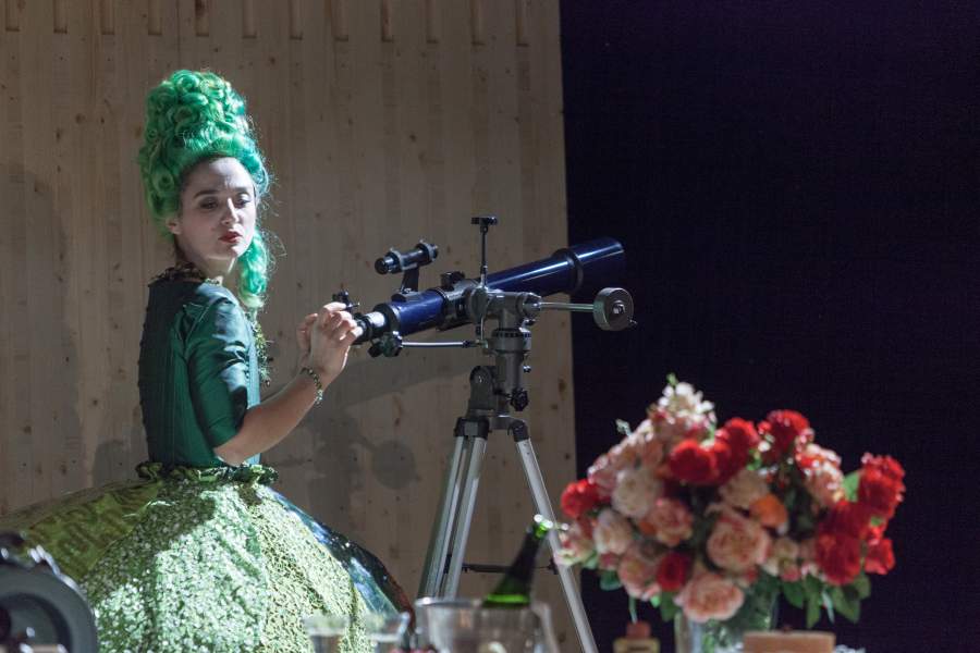 Émilie du Châtelet - Naturphilosophin des 18. Jahrhunderts - auf der Suche nach Glück und Erkenntnis, begleitet von der sinnlichen und glitzernden Musik Debussys und Ravels sowie Ereignissen, Videos und Super-8-Filmen von Roman Signer.