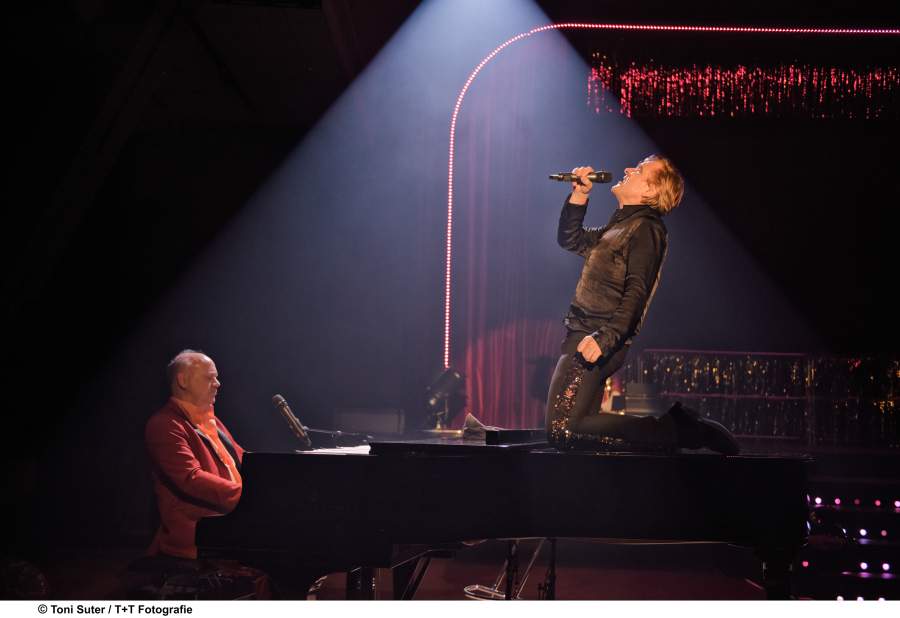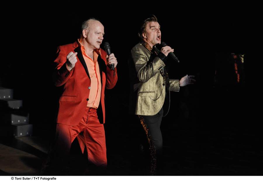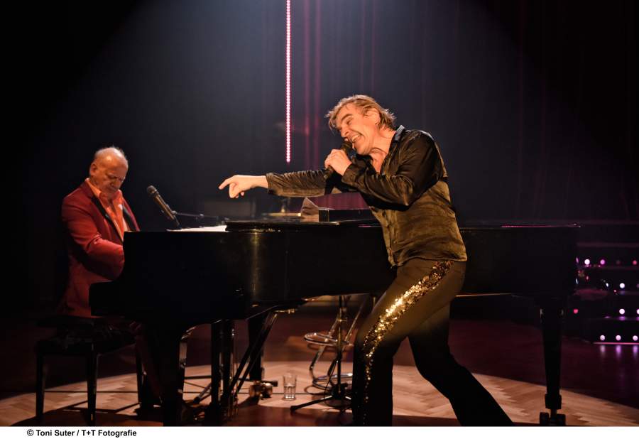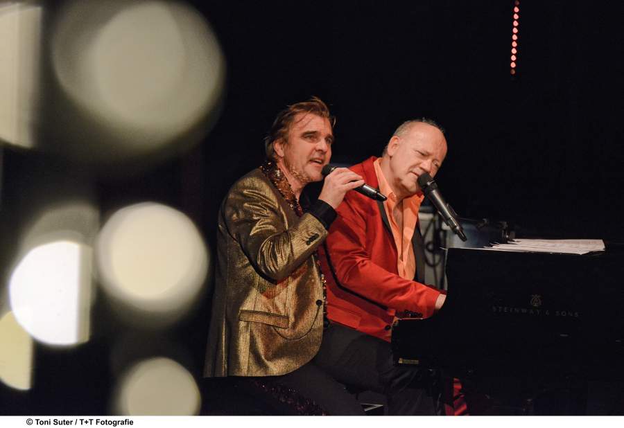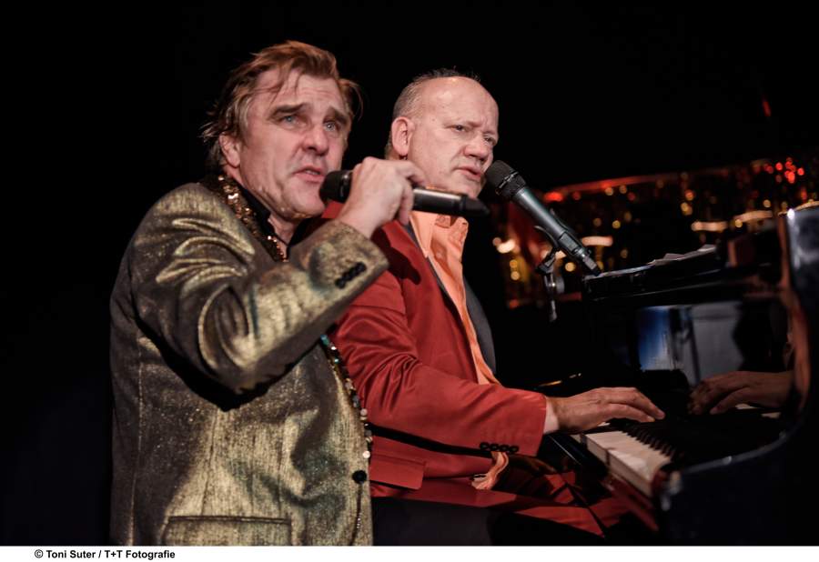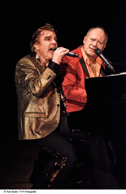 Und: Dabei stellt Daniel Rohr als Sänger und Schauspieler sein Verwandlungstalent einmal mehr unter Beweis. Mit unerschütterlicher Komik und einem vielfältigen Mix aus Mimik, Gestik und Wortspielen zeigt er, was passiert, wenn die Schlagerhits beim Wort genommen werden. Genüsslich schlachtet er die einzelnen Hits aus, seziert mit einer beeindruckenden Verbalakrobatik die verschiedenen, verlogenen Lebenswirklichkeiten, die hinter den Hits stecken, mal wild gestikulierend, mal zusammengekauert auf dem Flügel. Grosses Lob verdient auch Dietmar Loeffler als Pianist Enzo alias Didi, der am Flügel den Schlagerreigen musikalisch abwechslungsreich und virtuos begleitet und verschiedentlich mitsingt. Grossartig das im Duett gesungene "Sound of Silence".