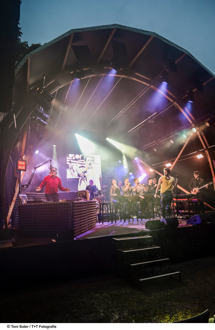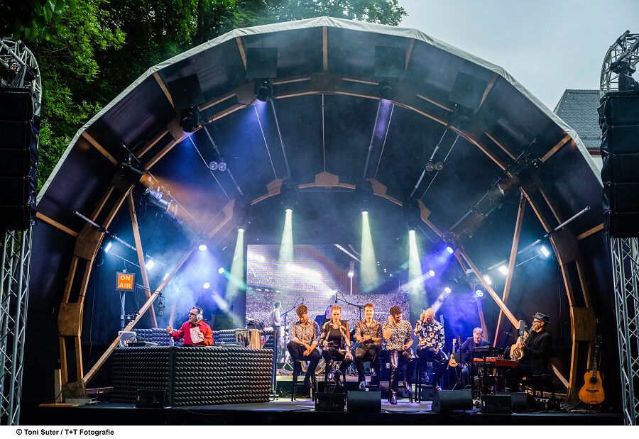 In diesem Tribute zelebrieren die Sängerin Sarah Kappeler und die Sänger Andreas Lareida, Tobias Carshey, Timo Meier und Pascal Hervouet des Forges gemeinsam mit DJ Dan Tube (Daniel Rohr) eine historische Radioshow, die die Karriere von Queen im zeitlichen Kontext nacherleben lässt. All we hear is Radio Ga Ga….
