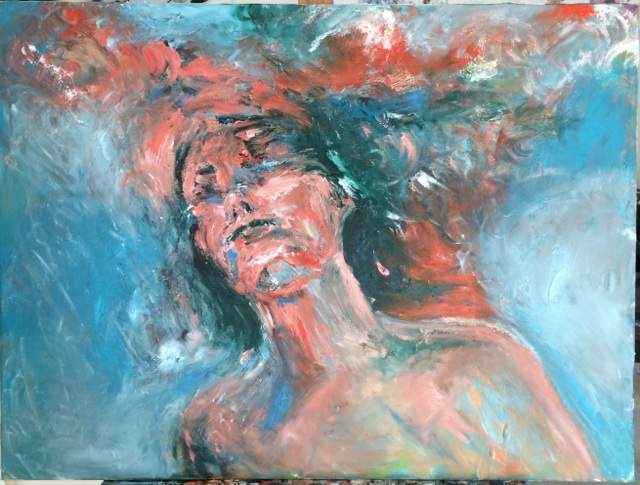 "Deep Water" zeigt im Malprozess auftauchende Figuren, die sich im Wasser bewegen.
